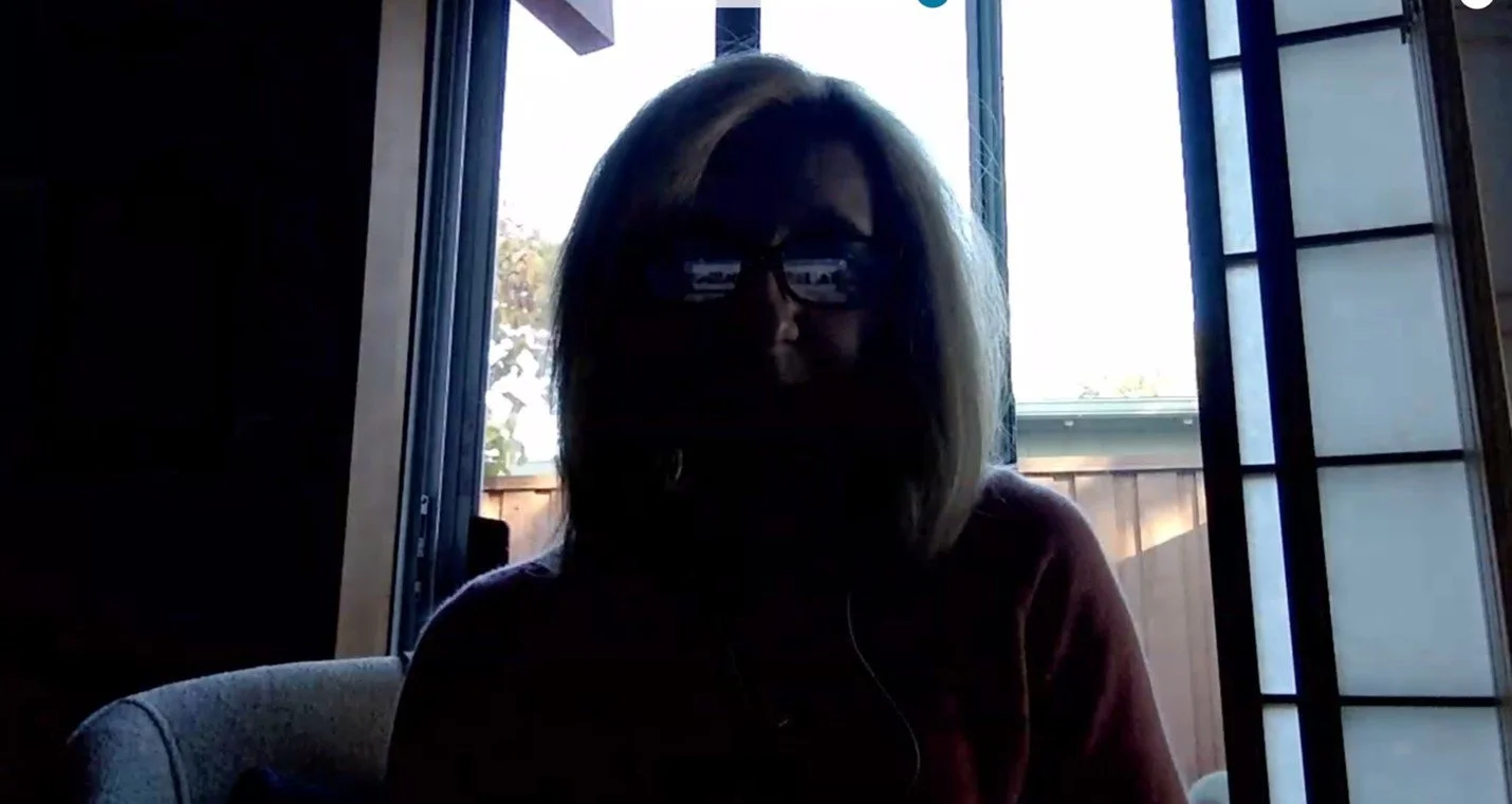Janet has a window on her left side (you can see it in the photo) and a ring light clipped to the laptop on her right side to light up the dark side. You need to light up your WHOLE face and make sure it is WELL LIT. This is important.